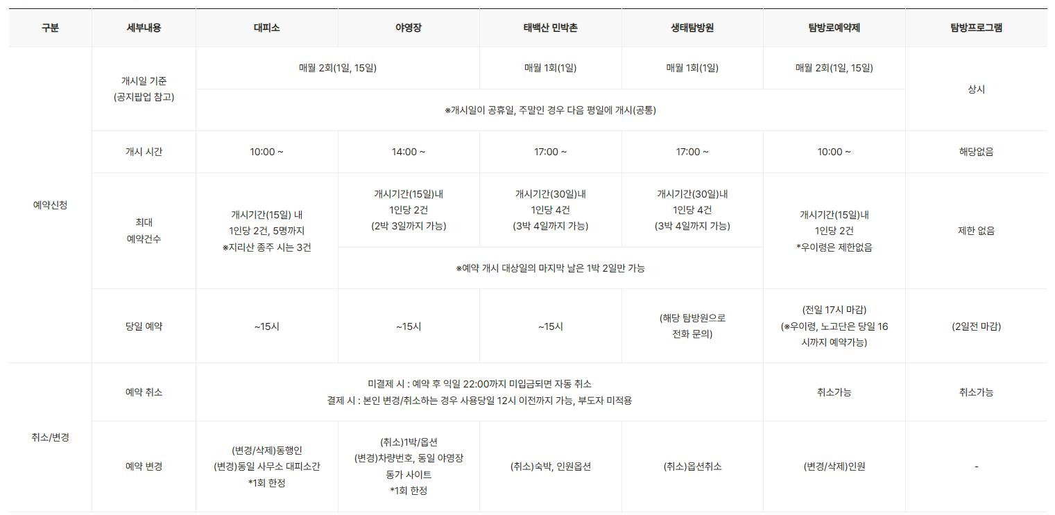 ❗캠핑장 / 대피소 / 생태 탐방원 / 민박촌 / 탐방로 / 탐방 프로그램 예약이 가능합니다❗
